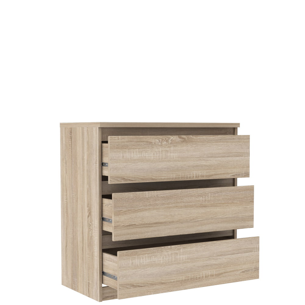 Imitujący drewniane usłojenie dekor Dąb Sonoma świetnie sprawdzi się w wielu pomieszczeniach domu czy mieszkania. Komoda wyposażona w trzy szuflady umożliwia lepszą organizację nagromadzonych rzeczy. Mebel ten można połączyć z innymi artykułami z tej kolekcji.