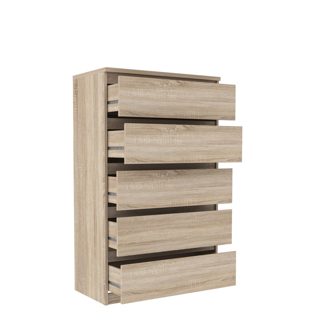 Wysoka, pionowa komoda z szufladami zapewnia idealne miejsce na wszystkie najpotrzebniejsze przedmioty znajdujące się w zasięgu ręki. Klasyczna bryła sprawdzi się w każdym pomieszczeniu domu i mieszkania. Mebel ten można połączyć z pozostałymi artykułami z tej kolekcji.