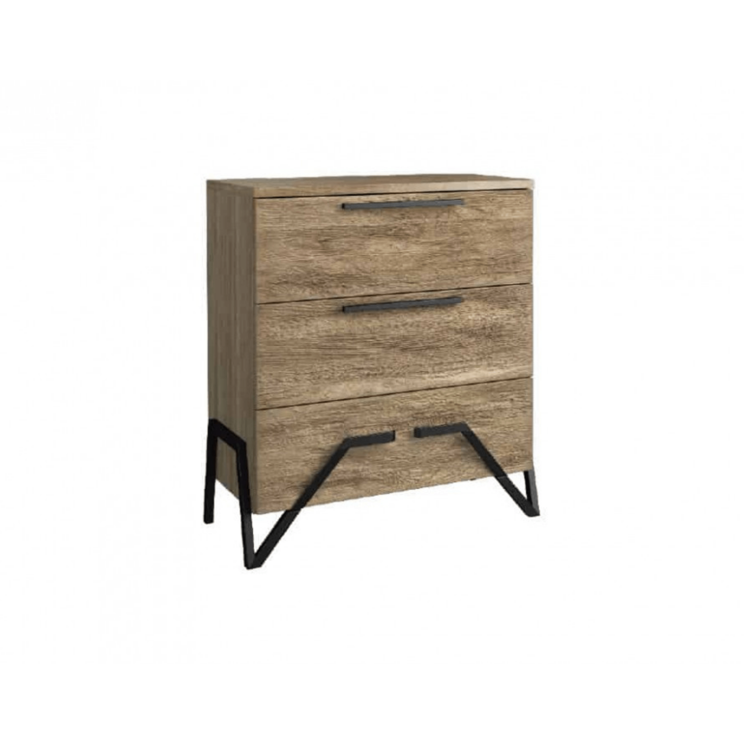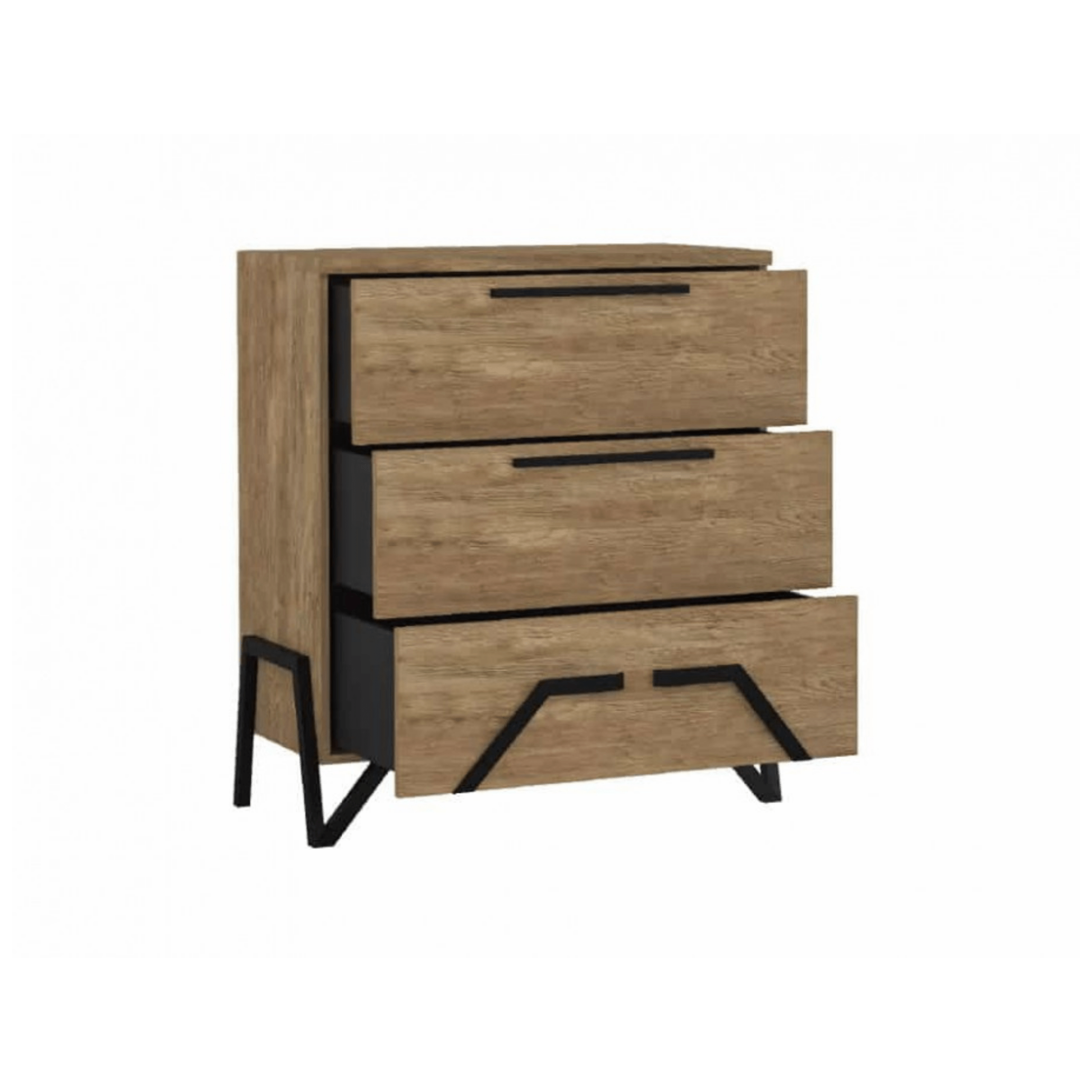 Pik to wyjątkowa kolekcja mebli do salonu, jadalni i sypialni z frontami z litego drewna i korpusami w okleinie naturalnej. Zachwyca oryginalnymi bryłami w stylu industrialnym oraz piękną kolorystyką: kasztan i dąb naturalny lager. Dębowe elementy zostały poddane procesowi głębokiej strukturyzacji, a następnie wybarwione, dzięki czemu meble zyskały niepowtarzalny charakter. Metalowe nogi i pochwyty wspaniale podkreślają loftowy styl kolekcji, ciekawie połączone, nadają bryle lekkości i designerskiego sznytu. Blaty stołów charakteryzują się odpornością na działanie podwyższonych temperatur i alkoholu. Meble wyposażono w nowoczesne rozwiązania, takie jak system cichego domykania drzwiczek oraz oświetlenie LED z wyłącznikiem pojemnościowym.