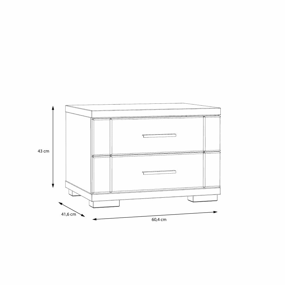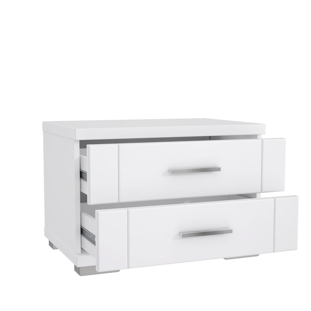 Biała szafka nocna z kolekcji Snow idealnie wkomponuje się w przestrzeń każdej sypialni. Mebel wyposażony jest w 2 szuflady, których fronty obsadzone zostały pomiędzy szerokimi ramami. Praktyczna szafka świetnie sprawdzi się z łóżkiem z kolekcji Snow.