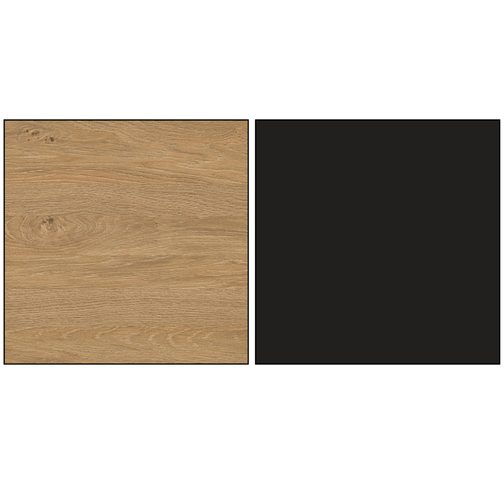 Kolekcja ATE utrzymana jest w modnym kolorze dąb kamienny, który w połączeniu z czarnymi wstawkami oraz szeroka gamą elementów pozwala zaaranżować każde pomieszczenie a umeblowane wnętrza podążają za obecnie panującymi trendami, zyskując przy tym niepowtarzalny charakter. Całość wykonana jest z wysokiej jakości płyty wiórowej zapewniającej trwałość mebli oraz ich bezpieczeństwo. W standardzie znajdziemy prowadnice kulkowe i hartowane szkło szyb frontowych. Kolekcja wyposażona jest w system cichego domyku (w zawiasie), który sprawia, że użytkowanie tych mebli jest wyjątkowo komfortowe. Dodatkowo witryny wyposażyć można w oświetlenie LED