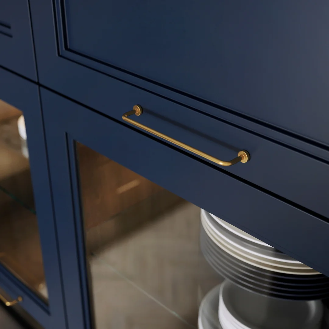 Elementami uzupełniającymi stylistykę mebli kuchennych Alicja Lakier są frezowane, bardzo dekoracyjne listwy wieńczące szafki górne, a także szeroki wybór blatów roboczych. Tu do wyboru mamy wzory inspirowane naturalnym drewnem i skałami. Ich bogaty rysunek doskonale współgra i podkreśla głębokie odcienie proponowane na korpusy i fronty. „Kropkę nad i” tworzą uchwyty meblowe. I tu projektanci postawili na synergię prostoty i dekoracyjności. Dedykowany zestawowi model to cienki prosty reling w odcieniu starego złota.