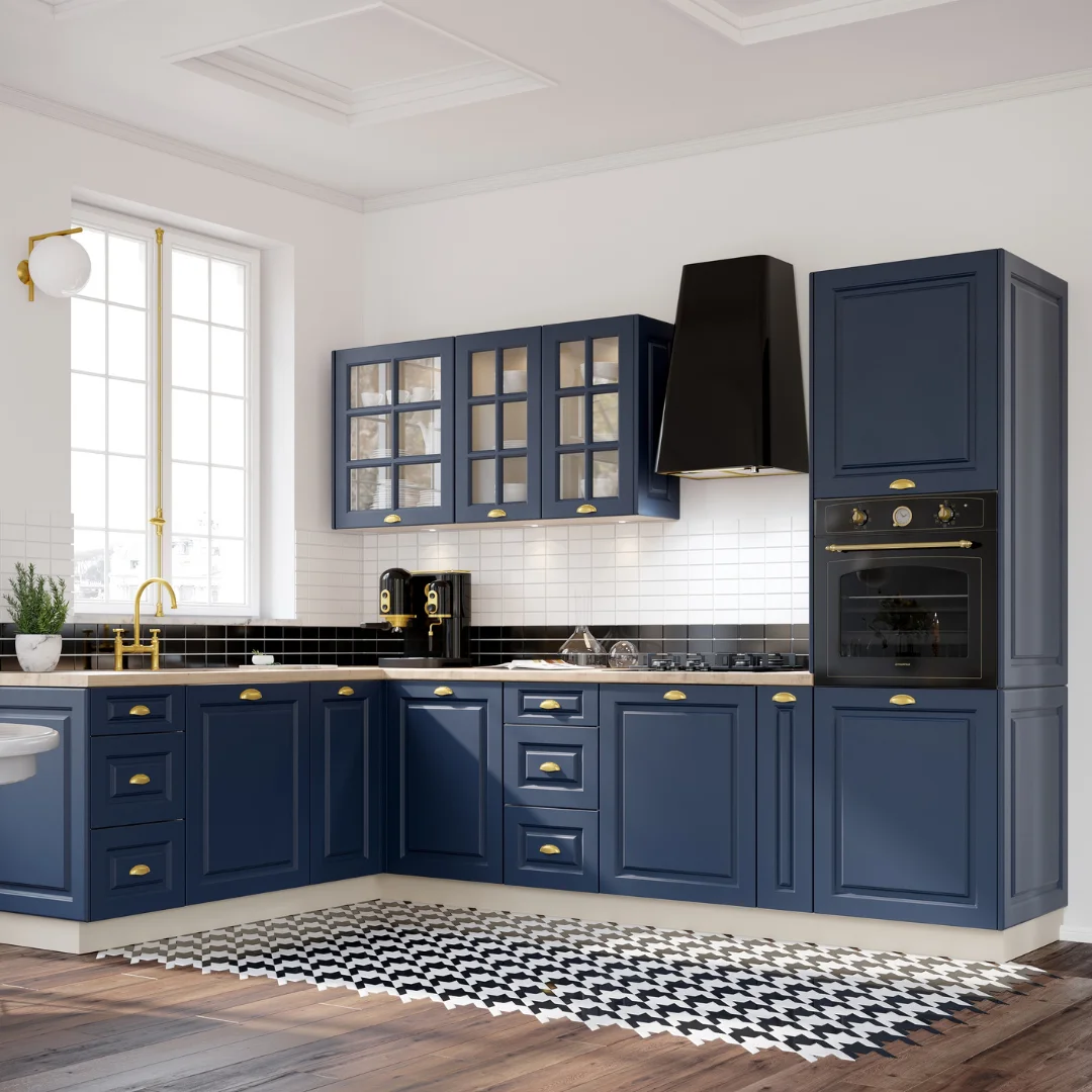 Jak stworzyć taką kuchnię? Na przykład za pomocą mebli kuchennych Alina Lakier. Ich najbardziej charakterystyczną cechą są wykonane z frezowanych płyt MDF fronty utrzymane w stylistyce pasującej do angielskich kuchni. Pokryte lakierem zachwycają nie tylko ozdobnymi frezami w kształcie prostokąta, ale również absolutnie gładką powłoką – również na krawędziach bocznych. Możemy się nią cieszyć niezależnie od tego czy wybierzemy wersję w połysku, czy matową. Obie aż zachęcają do dotyku.