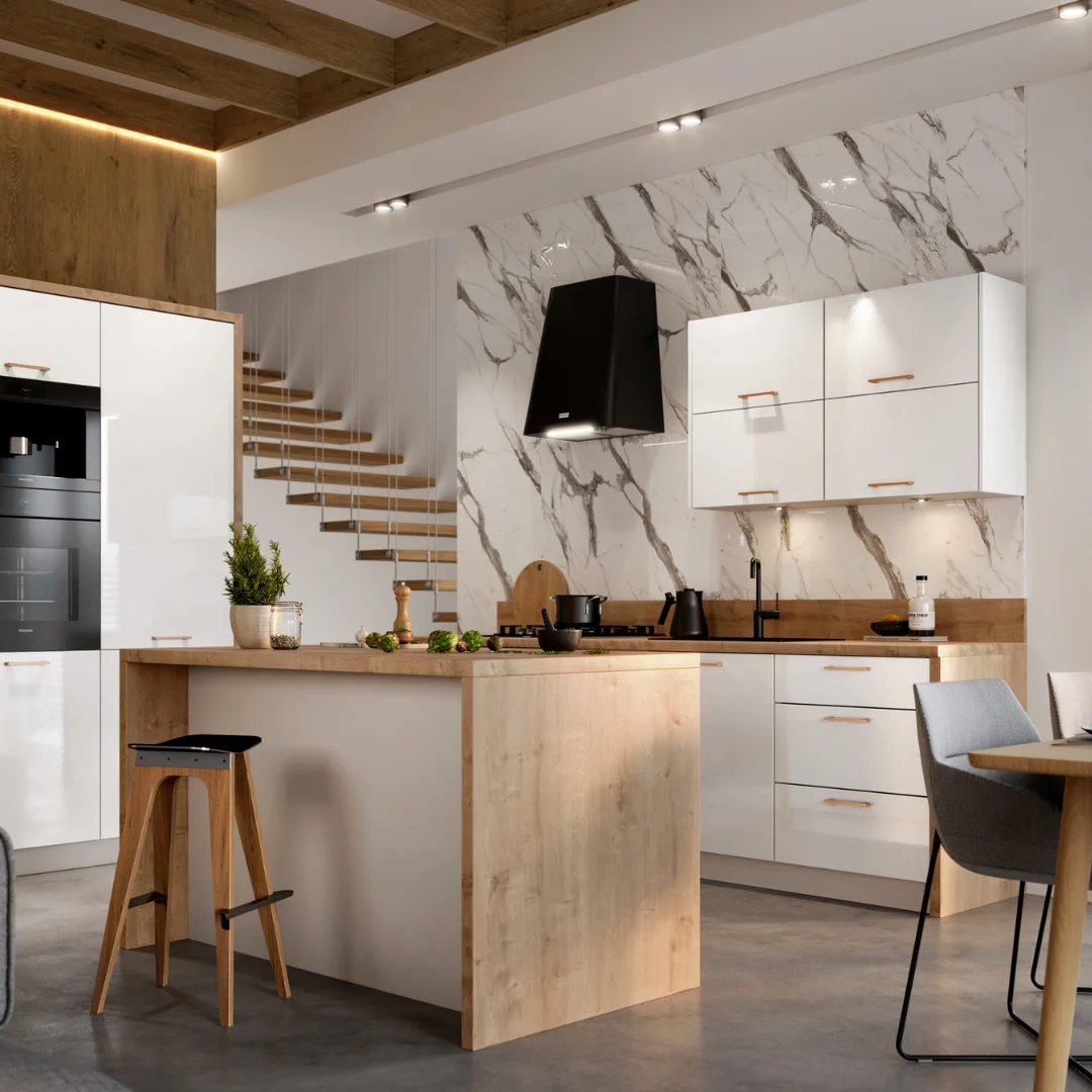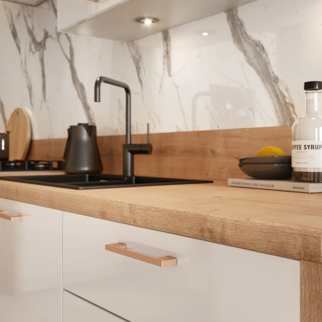 Uchwyty oraz blaty do szafek stojących dobierasz indywidualnie. Oferta blatów jaką dysponujemy umożliwi wybranie blatu doskonale dopasowanego do kolorystyki brył. Natomiast, w zależności od zastosowanego uchwytu, zestaw mebli kuchennych może zyskać nietuzinkowy charakter.