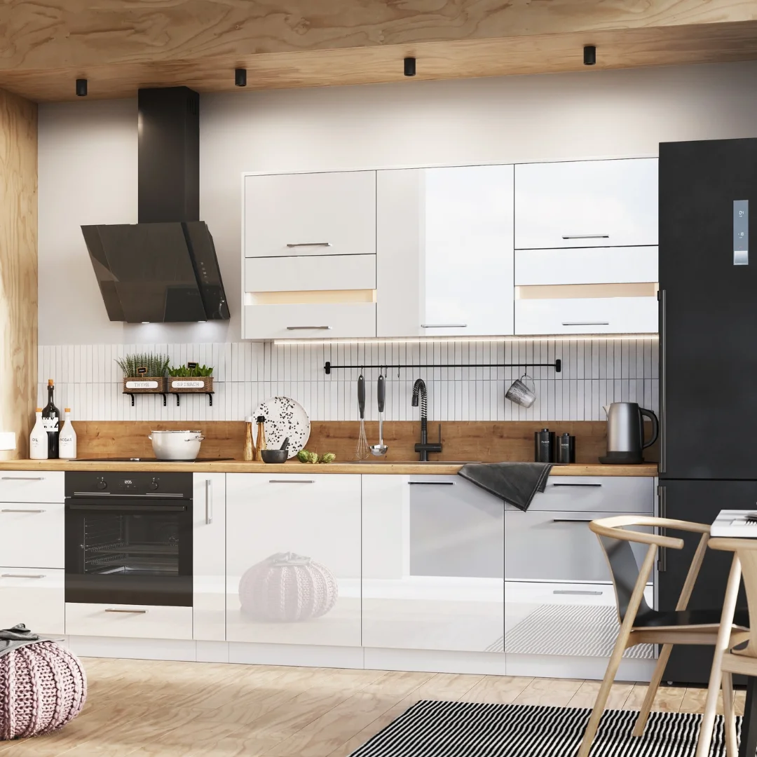 - Akrylowe fronty w wysokim połysku.