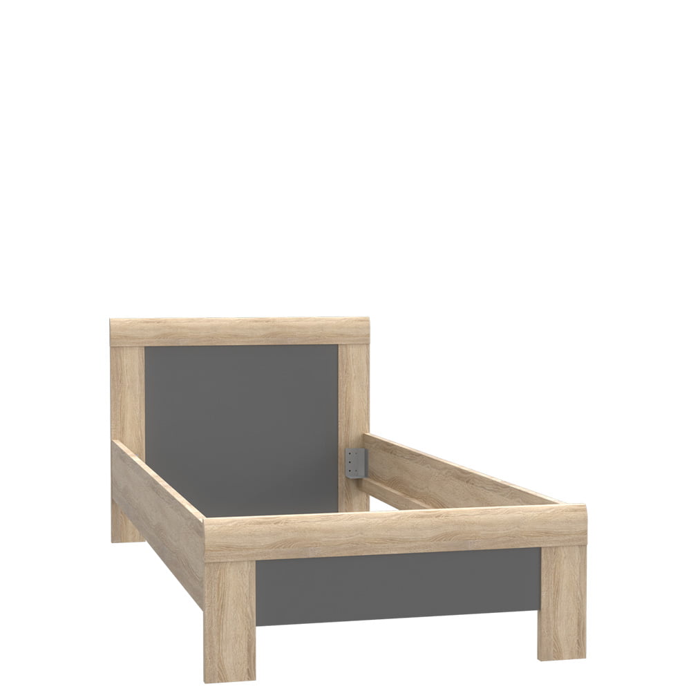 Młodzieżowe łóżko z kolekcji YOOP wykonane jest w kolorze Dąb Sonoma ze wstawkami w kolorze Szary Mat. Prosta i nowoczesna budowa łóżka sprawia, że doskonale pasuje do pokoju młodzieżowego. łóżko sprzedawane jest bez materaca. Wymiar materaca: 90×200 cm. Stelaż wymaga wkładu NX20 , lub NX090.
