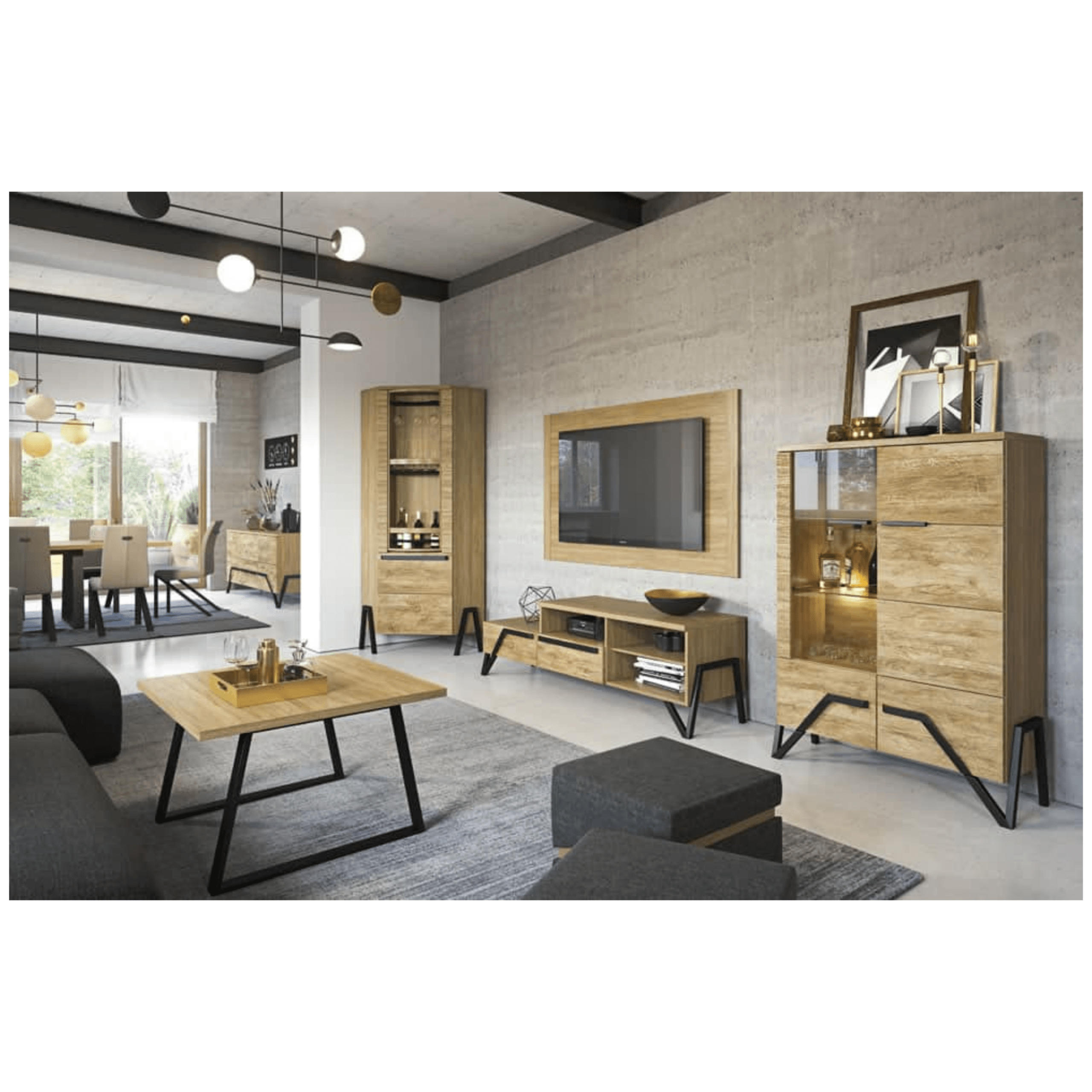 Pik to wyjątkowa kolekcja mebli do salonu, jadalni i sypialni z frontami z litego drewna i korpusami w okleinie naturalnej. Zachwyca oryginalnymi bryłami w stylu industrialnym oraz piękną kolorystyką: kasztan i dąb naturalny lager. Dębowe elementy zostały poddane procesowi głębokiej strukturyzacji, a następnie wybarwione, dzięki czemu meble zyskały niepowtarzalny charakter. Metalowe nogi i pochwyty wspaniale podkreślają loftowy styl kolekcji, ciekawie połączone, nadają bryle lekkości i designerskiego sznytu. Blaty stołów charakteryzują się odpornością na działanie podwyższonych temperatur i alkoholu. Meble wyposażono w nowoczesne rozwiązania, takie jak system cichego domykania drzwiczek oraz oświetlenie LED z wyłącznikiem pojemnościowym.