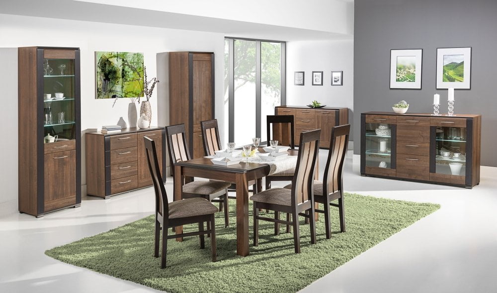Blat ławy oraz stołu wykonany jest z płyty wiórowej laminowanej o grubości 18 mm. / listwy MDF 18 mm