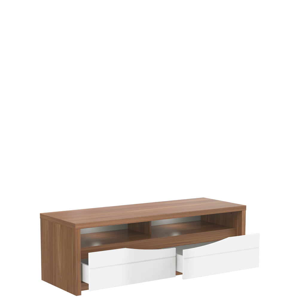 Szafka RTV z kolekcji Saint Tropez pozwoli stworzyć domowe centrum multimedialne. Ciepły kolor Dębu Sangallo połączono z białymi, połyskującymi frontami. Ciekawe zestawienie kolorów zostało podkreślone poprzez oświetlenie zamontowane na wieńcu szafki (oświetlenie LED w standardzie), a dekoracyjne frezowania zastąpiły tradycyjne uchwyty. Szafka RTV wyposażona została w pojemne, podwójne szuflady z systemem samodomykającym oraz półki na sprzęt multimedialny.